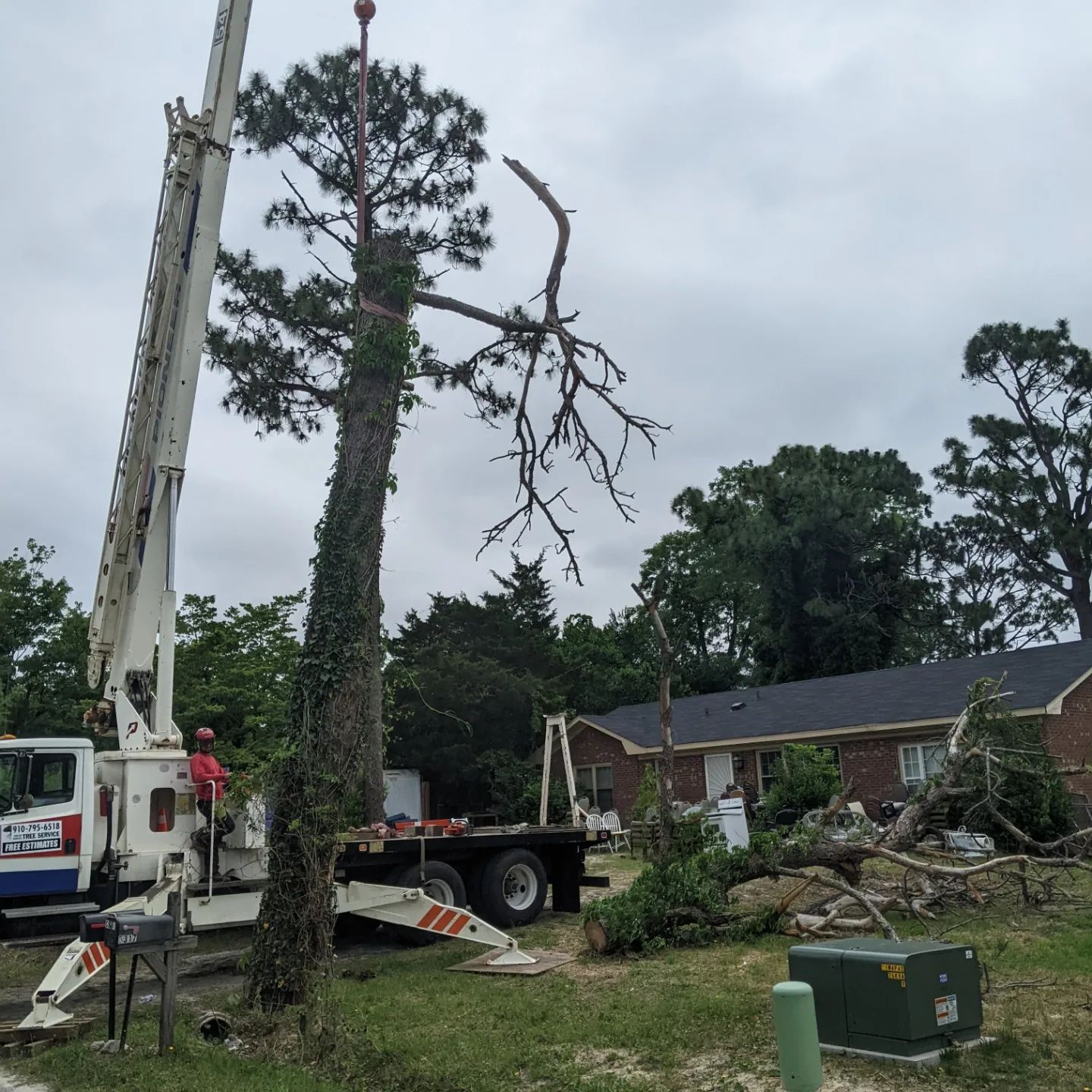 Recently we came alongside signature plumbers to help out someone less fortunate in our community. We removed a dead pine that was a hazard to the home, the neighbors, and the owner’s parking area.